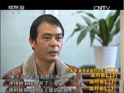 李波海:那時候以為肯定要去槍斃了,肯定要被海盜拉去槍斃了,電視上面看過一些,海盜殺人的時候,要把人質的眼睛都蒙起來對不對,那時候害怕得要命,真是害怕死了,他把我推下去,推到駕駛臺下面,他把我推下來,把我押下去,我兩只手被綁住了,旁邊聲音也沒有,那時候真的是很害怕很害怕。