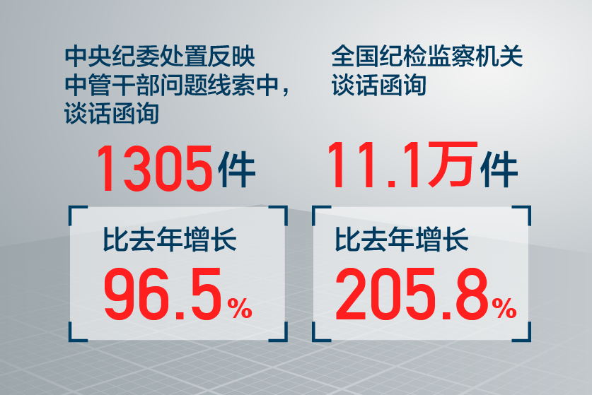 今年1至11月,全國紀檢監察機關談話函詢11.1萬件次,比去年同期增長205.8%;