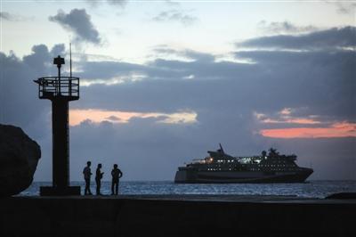 2016年12月20日,三沙市永興島,“三沙1號”在運送完補給之后返航,留在島上的工作人員遠眺艦船,由于船期受海浪影響很大,每次上島的工作人員都無法確認自己下島回家的日期。
