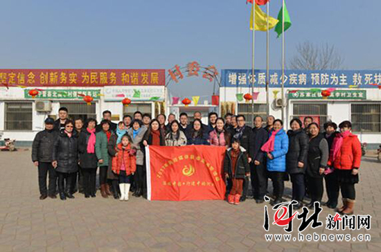 1月14日上午,“溫暖中國 行進中的河北”網媒新春走基層特別報道小分隊來到寧晉縣蘇家莊鎮北高李村,感受當地移風易俗、文明鄉村建設情況。圖為小分隊成員與當地村民合影。