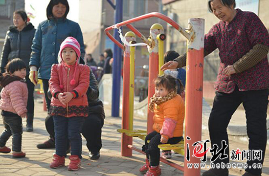 1月14日上午,“溫暖中國 行進中的河北”網媒新春走基層特別報道小分隊來到寧晉縣蘇家莊鎮北高李村,感受當地的移風易俗、文明鄉村建設情況。圖為老人和孩子們在村廣場上休閑。