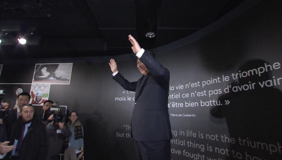 習近平和彭麗媛在巴赫主席夫婦陪同下,參觀國際奧林匹克博物館