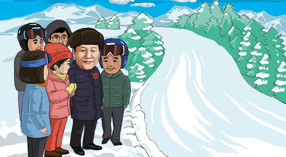 隆冬時節,習近平總書記冒著嚴寒來到河北省張家口市考察北京冬奧會籌辦工作。他高瞻遠矚對張家口賽區規劃和籌辦工作提出要求,叮囑參加滑雪冬令營的少年兒童好好學習、健康成長,勉勵國家滑雪隊運動員堅持刻苦訓練、努力為國爭光。他向大家寄予期望,努力帶動更多人參與冰雪運動,推動全民健身廣泛開展。