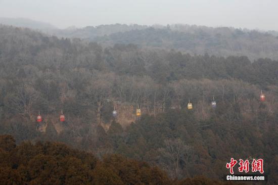 資料圖:2016年12月31日,霧霾籠罩北京,北京八大處公園的纜車“在霧霾中穿行”。 中新社記者 盛佳鵬 攝