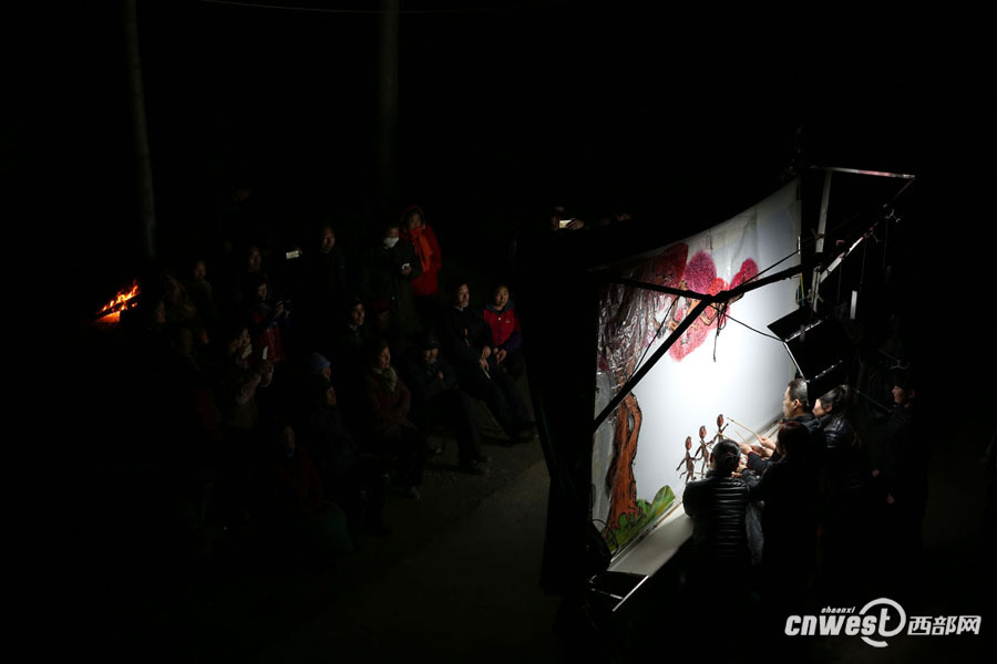 西部網訊(記者 魏永賢)渭南市華州區櫻桃溝村,夜幕降臨,村里的老鄉們匯聚到皮影戲臺前觀看皮影戲,冬夜室外寒冷,老鄉們的身后生起了火御寒。“你看,喜兒的芭蕾跳得多好呀,比真人都好。”一名年輕的媳婦興奮地說。
