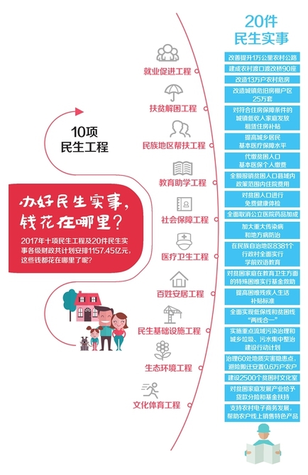 和過去一樣,民生工程的開展圍繞人們醫(yī)食住行學(xué)娛等分成十大類,包括就業(yè)促進、扶貧解困、民族地區(qū)幫扶、教育助學(xué)、社會保障、醫(yī)療衛(wèi)生、百姓安居、民生基礎(chǔ)設(shè)施、生態(tài)環(huán)境和文化體育等工程。