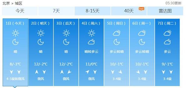 北京未來7天天氣預報。