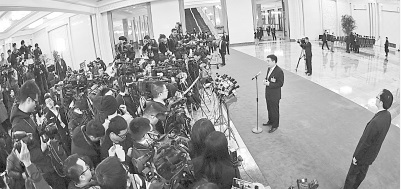 記者們在部長通道采訪部長。光明日報(bào)記者 郭俊鋒攝/光明圖片