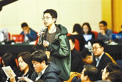 本報記者在向教育部長提問 攝影/本報記者 郝羿
