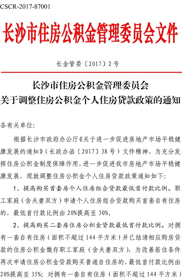 同時,嚴格按《關于進一步促進房地產市場平穩健康發展的通知》(長政辦函[2017]38號)文件規定的限購區域范圍執行。本通知字2017年3月20日起執行,3月20日之前已進窗登記的貸款申請按原貸款政策執行。