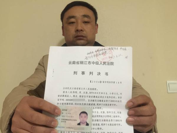 趙偉剛遭遇的麻煩,源于麗江市永勝縣公安局在2003年破獲的一起運輸毒品案。一名河南籍男子指使兩名女子,以體內藏毒的方式,將601.6克海洛因從云南瑞麗市運輸至四川攀枝花市,途經云南麗江永勝縣時,被公安機關抓獲。
