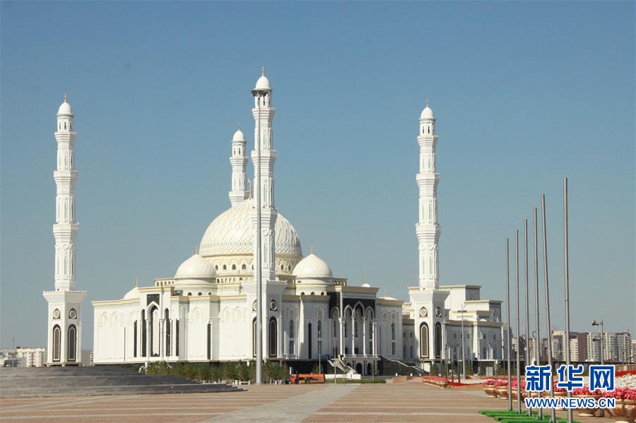 這是2013年8月19日在哈薩克斯坦首都阿斯塔納拍攝的哈茲拉特蘇丹清真寺外景。新華社記者周良攝