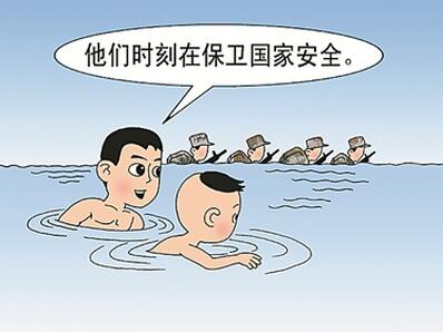 小時候,爸爸也帶著我去游泳,海邊也有武裝泅渡的解放軍叔叔。