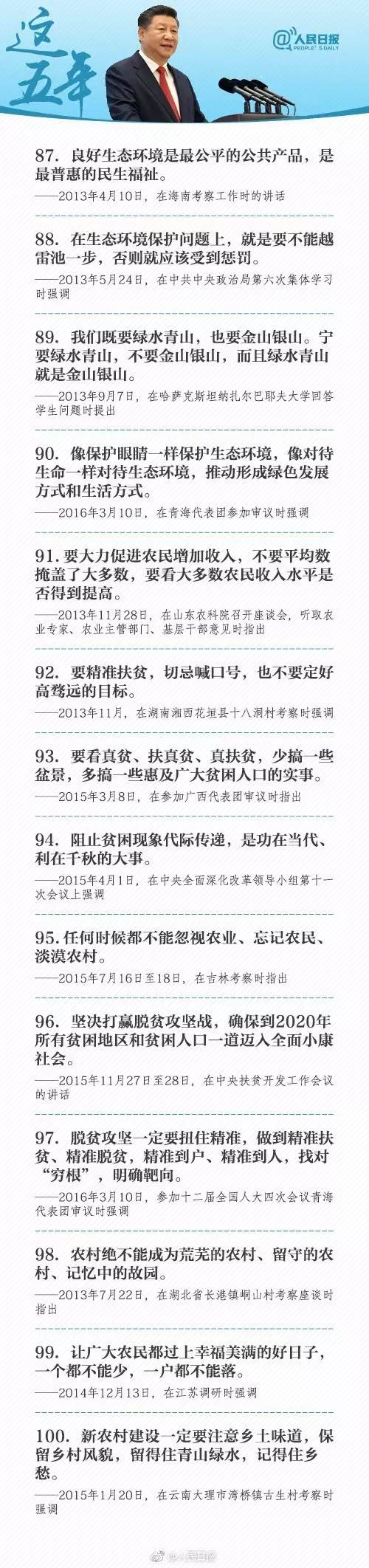 ①堅持“老虎”、“蒼蠅”一起打;②綠水青山就是金山銀山;③空談誤國,實干興邦;④人民對美好生活的向往,就是我們的奮斗目標;⑤確保部隊召之即來、來之能戰、戰之必勝…習近平治國理政100個金句,一起學起來!