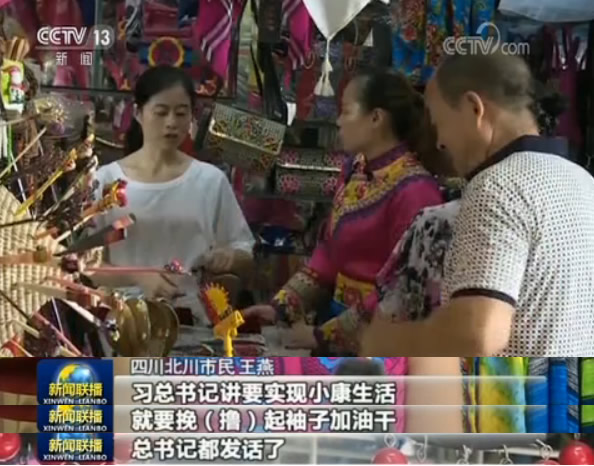 六年前,羌族姑娘王燕和家人來到四川北川。憑著一手羌繡的絕活,做起了民族飾品生意。王燕告訴記者,她創業的最大動力,是習總書記的一句話。