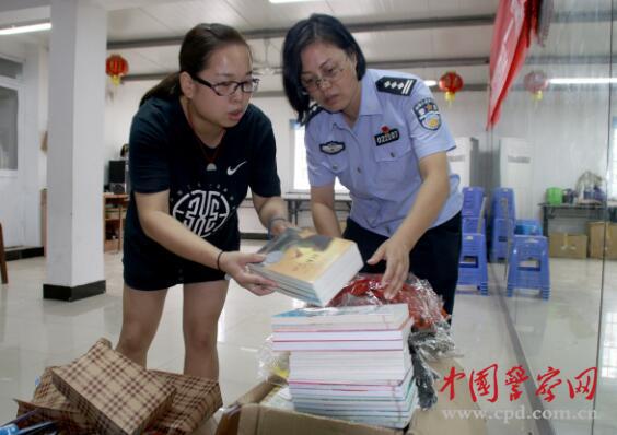 中國警察網訊 9月8日中午,北侖公安分局出入境大隊大隊長、19大代表胡朝霞及其愛心團隊向貴州省臺江縣黃毛小學捐獻書包,文具盒、故事書、玩具、衣服,鞋子等實物,價值近萬元。圖為胡朝霞在整理捐獻的實物。并通過中國郵政裝運寄給臺江縣黃毛小學。