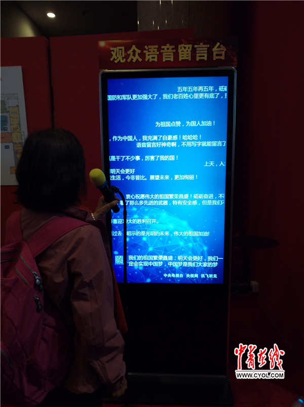 走出第三展區,今年69歲的王女士感嘆道:“總書記真偉大!”。語音留言區,不時響起參觀者的熱情留言“為祖國點贊,為中國加油”“作為中國人,我充滿了自豪感”“我們一定會實現中國夢,中國夢是我們大家的夢”。