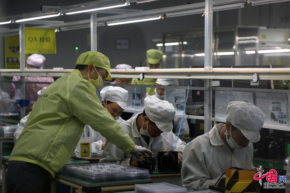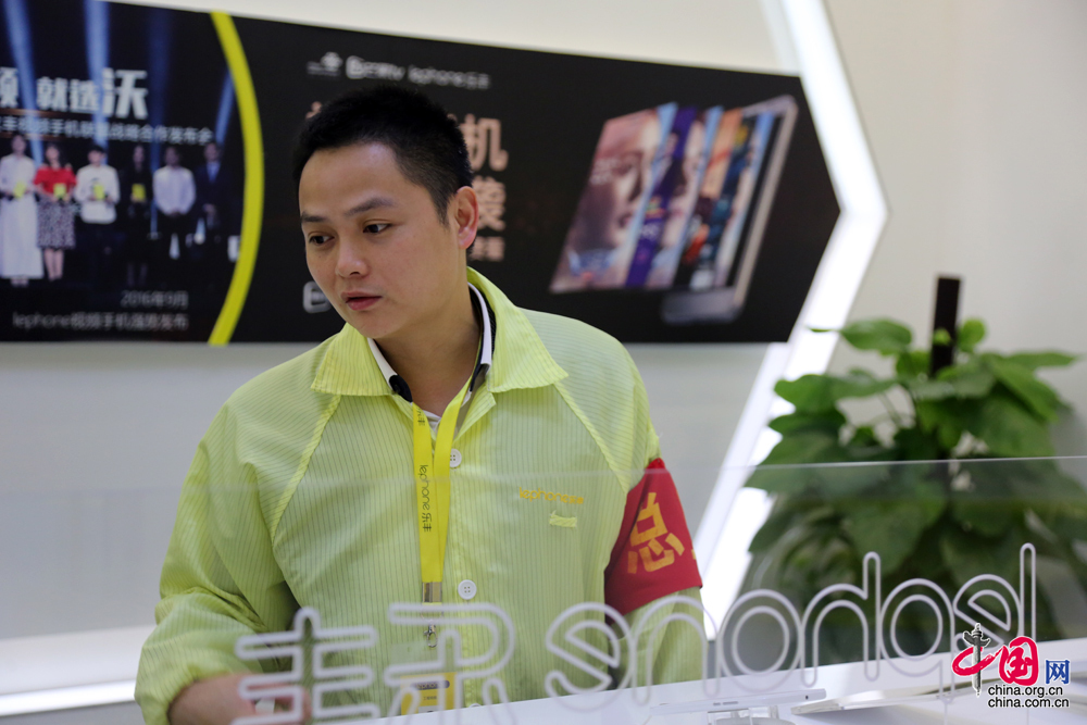 吳福全介紹生產車間裝機流程。 中國網 楊楠 攝影
