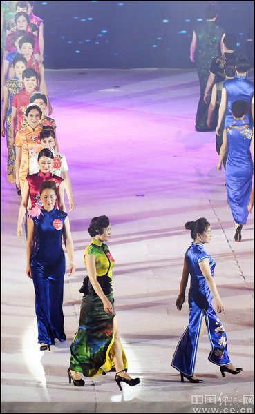 2017年11月21日,在海南?谑谐修k的“2017世界旗袍文化大使總決賽”中,河北省保定市蓮池區西高莊村民王寶紅(圖前排右二)榮獲亞軍。