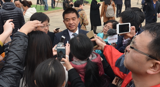 【《法律與生活》兩會記者 盛學友 報道】在每年的全國兩會上,全國政協委員劉永好都是記者追逐的焦點人物。3月3日下午,全國政協十三屆一次會議開幕之前,在人民大會堂東門南側,他就被記者圍個水泄不通。《法律與生活》記者也在其中,就產業扶貧問題,對其進行采訪。