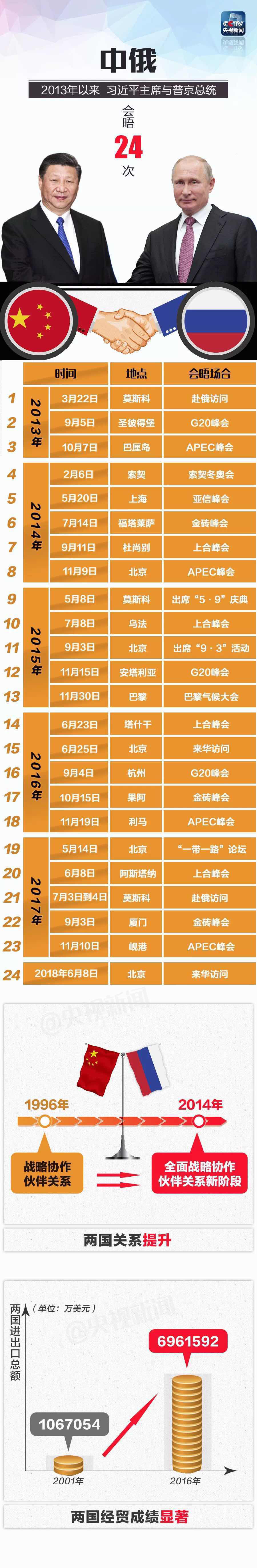 自2000年以來,普京總統(tǒng)先后19次來華訪問和出席國(guó)際活動(dòng)。2013年至今,習(xí)近平主席與普京總統(tǒng)先后會(huì)晤24次。這可能創(chuàng)造了當(dāng)今世界政壇的紀(jì)錄。