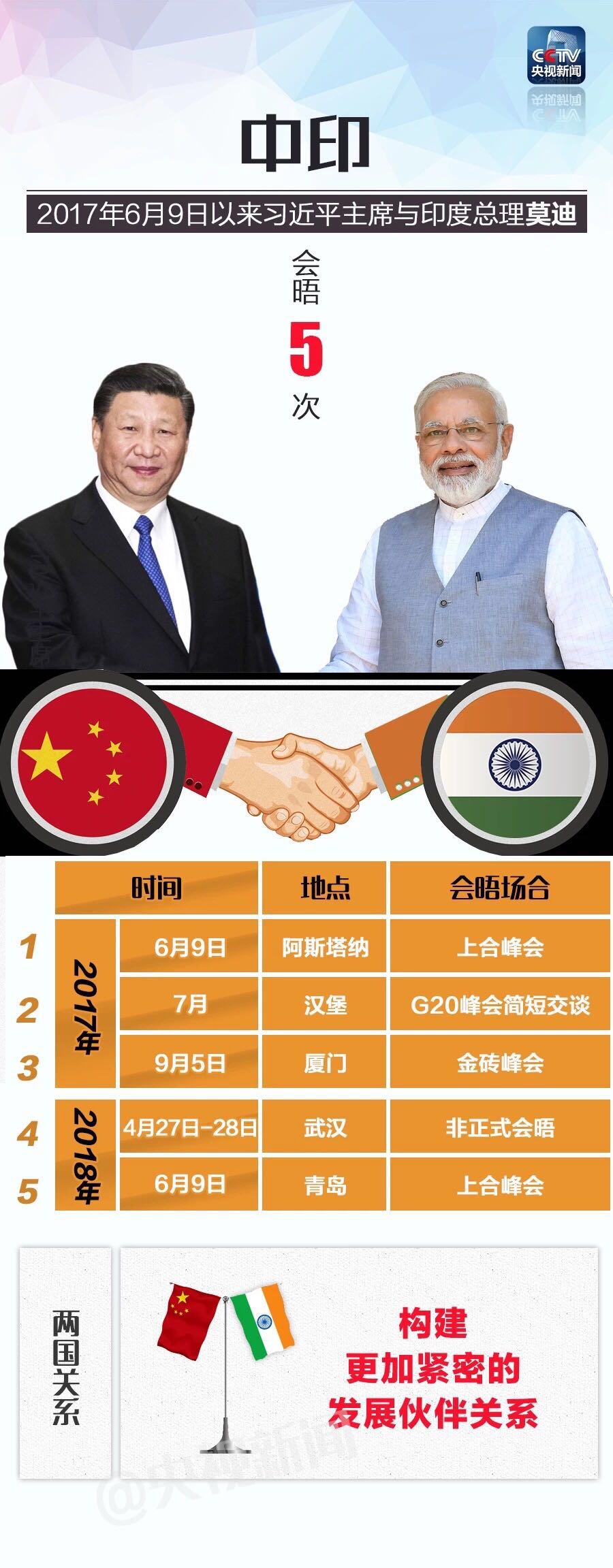 這是2017年6月9日以來習(xí)近平與莫迪的第5次會(huì)晤。過去一年間,中印關(guān)系因眾所周知的事件一度陷入困難局面,通過多方努力,事件有所轉(zhuǎn)寰。2017年9月5日,習(xí)近平在廈門會(huì)見莫迪時(shí)說,“中印兩國(guó)要堅(jiān)持雙方互為發(fā)展機(jī)遇、互不構(gòu)成威脅的基本判斷”,“要向世界表明,和平相處、合作共贏是中印兩國(guó)唯一正確的選擇”。兩國(guó)領(lǐng)導(dǎo)人在那次會(huì)見時(shí)都強(qiáng)調(diào),要維護(hù)好邊境地區(qū)的和平安寧。