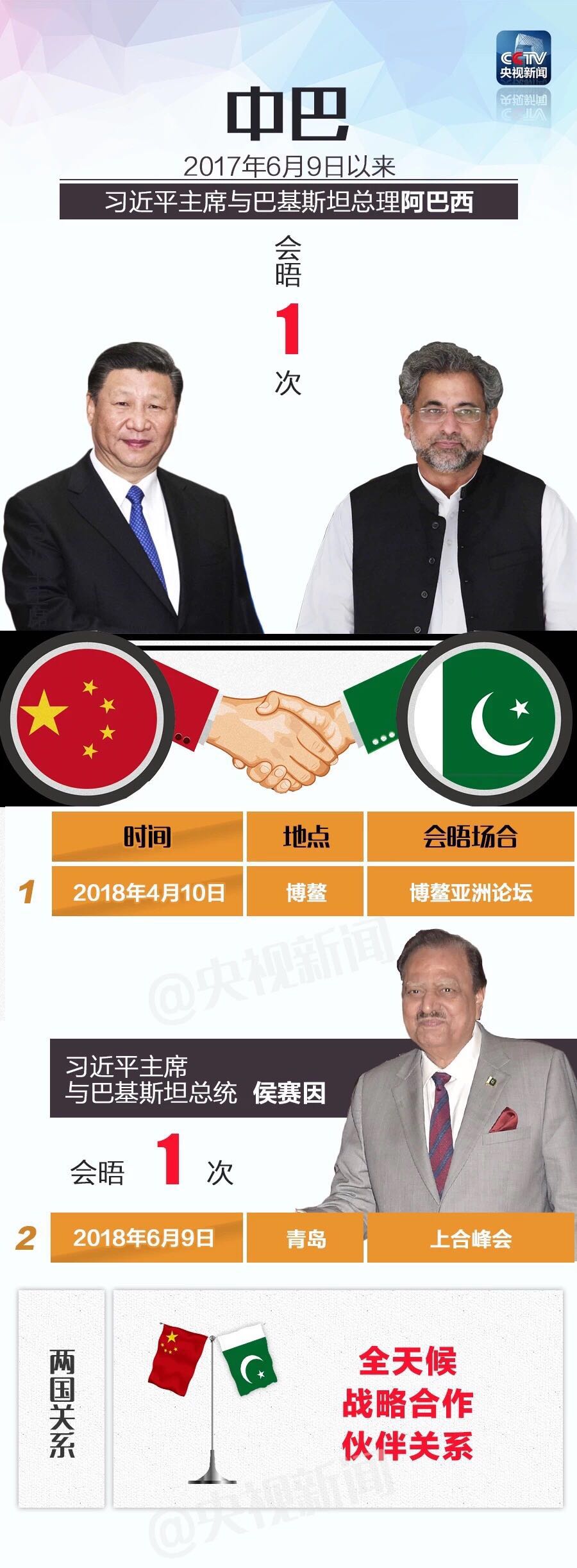 今年4月,習(xí)近平會(huì)見了前來參加博鰲亞洲論壇2018年年會(huì)的阿巴西總理。習(xí)近平用三組詞語寄語中巴關(guān)系:應(yīng)當(dāng)成為睦鄰友好的典范、地區(qū)和平穩(wěn)定的支柱、“一帶一路”國(guó)際合作的標(biāo)桿。阿巴西則重申,巴基斯坦和中國(guó)是鐵桿兄弟。