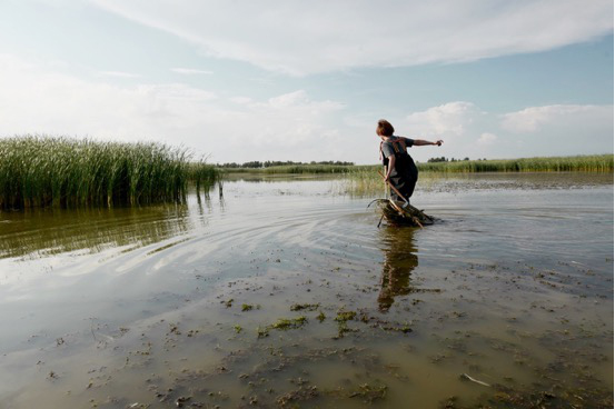王春麗在向海濕地清理漁網