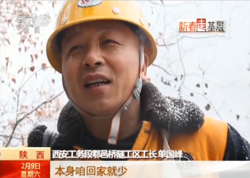 西安工務段漢中橋隧車間鄠邑橋隧工區工長 單國峰:我給她說,現在年齡大了,爬山就是個鍛煉,哈哈。那你咋說,你敢跟她說,她擔心的不行,盡量不讓家里人擔心,本身咱回家就少。