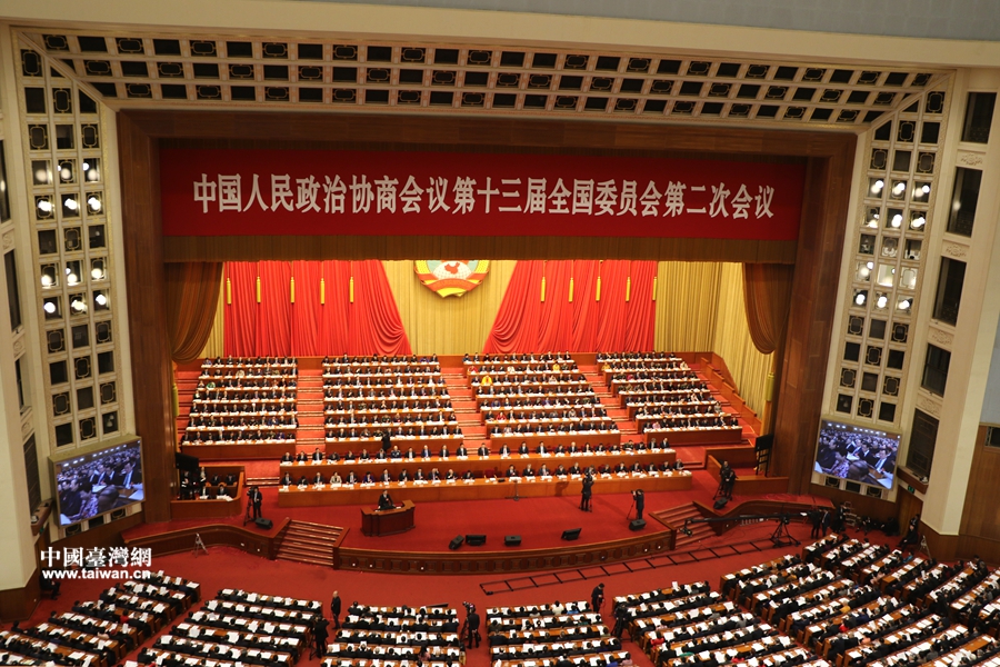 全國(guó)政協(xié)十三屆二次會(huì)議開(kāi)幕會(huì)現(xiàn)場(chǎng)。(中國(guó)臺(tái)灣網(wǎng) 雍紫薇 攝)