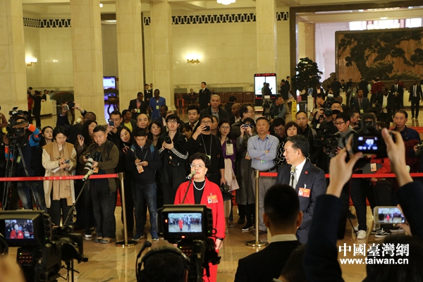 陳馮富珍委員回答記者提問。(中國臺(tái)灣網(wǎng) 雍紫薇 攝)
