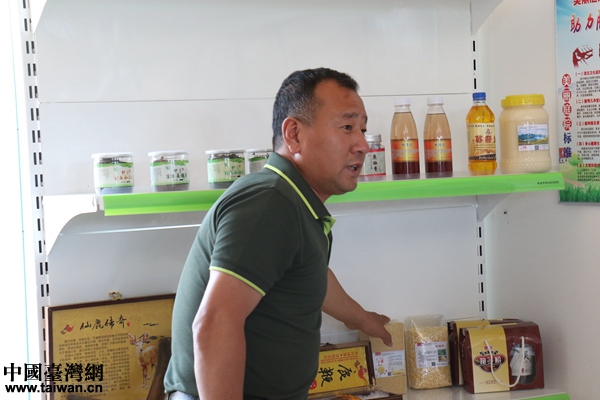 侯志國(guó)向采訪團(tuán)介紹村中農(nóng)產(chǎn)品。(中國(guó)臺(tái)灣網(wǎng) 尹賽楠 攝)