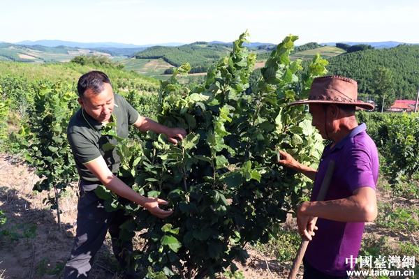 侯志國(guó)與村民探討榛子種植問題。(中國(guó)臺(tái)灣網(wǎng) 尹賽楠 攝)