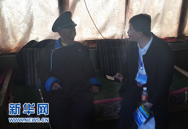 記者采訪扎西多布杰老人 柑丹鴦琦 攝