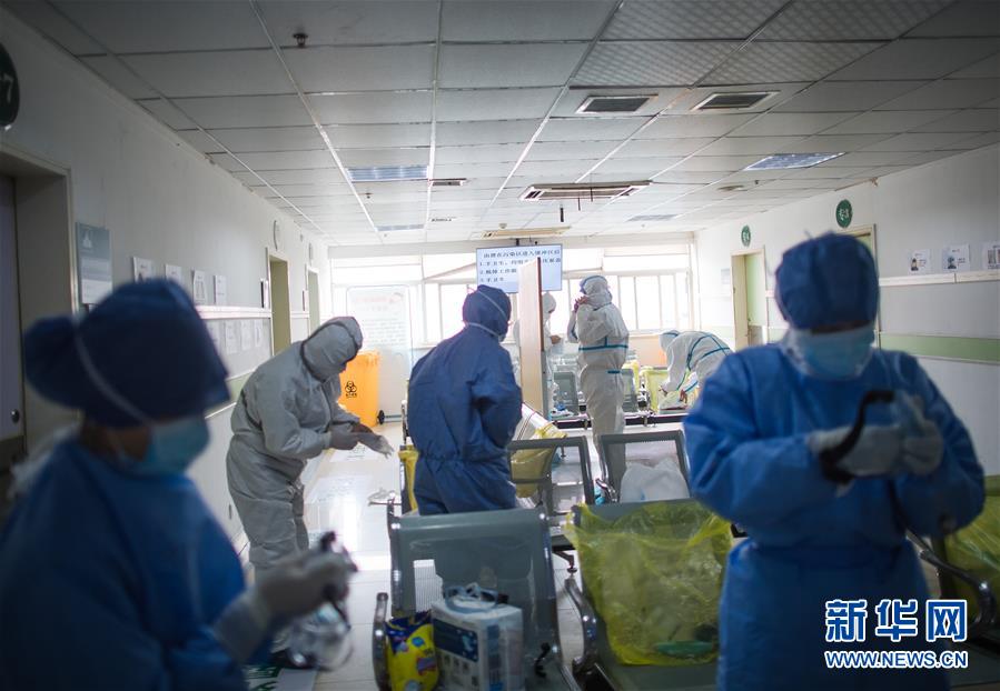 2月22日,醫(yī)務(wù)人員在武漢市第一醫(yī)院進(jìn)入隔離病區(qū)前穿戴隔離裝備。新華社記者 肖藝九 攝