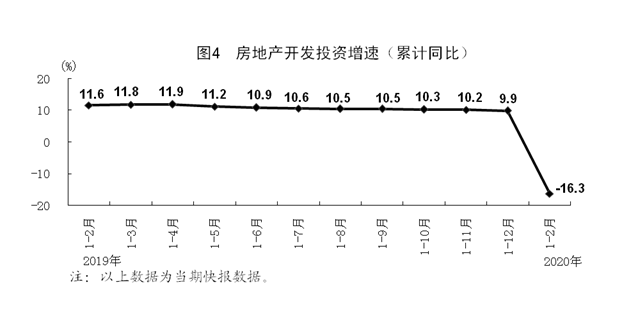 1-2月份,全國固定資產投資(不含農戶)33323億元,同比下降24.5%。分領域看,基礎設施投資同比下降30.3%,制造業投資下降31.5%,房地產開發投資下降16.3%。全國商品房銷售面積8475萬平方米,下降39.9%;商品房銷售額8203億元,下降35.9%。分產業看,第一產業投資下降25.6%,第二產業投資下降28.2%,第三產業投資下降23.0%。民間投資18938億元,下降26.4%。高技術產業投資下降17.9%,降幅低于全部投資6.6個百分點,其中高技術制造業和高技術服務業投資分別下降16.5%和20.8%。檢驗檢測服務和專業技術服務投資分別增長26.1%和4.3%。社會領域投資下降20.0%,其中衛生領域投資下降11.2%,降幅低于全部投資13.3個百分點。