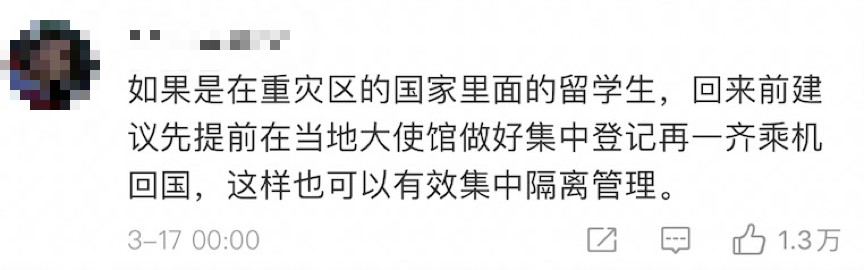 有的網友則認為,回國途中會增加染病風險,也容易增加無癥狀患者帶來輸入性交叉感染的風險。↓↓↓