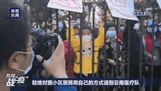 今天(18日),云南第二批支援湖北醫療隊102人從武漢駐地出發返鄉。駐地對面小區居民敲著鍋碗瓢盆,自制橫幅送別醫療隊隊員。