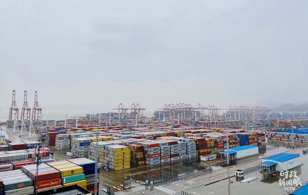 △習近平此次考察的穿山港區集裝箱碼頭,是繼深圳鹽田國際碼頭后全球第二大單體集裝箱碼頭,碼頭岸線3410米。(總臺央視記者李輝、段德文拍攝)