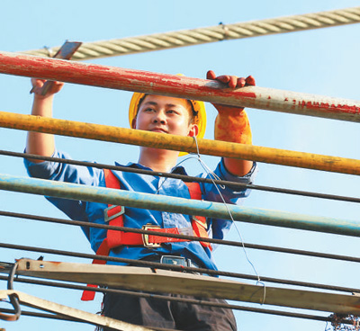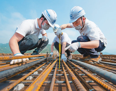 5月1日,湖北省秭歸縣,中鐵大橋局第七工程有限公司青年職工堅守建橋施工一線。雷 勇攝(影像中國)
