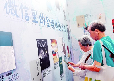 讀者通過手機掃碼體驗全媒體圖書館。新華社發