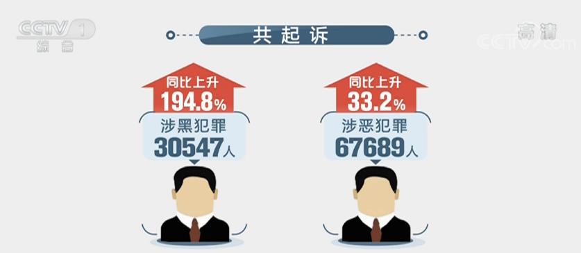 2020年是為期三年的掃黑除惡專項(xiàng)斗爭(zhēng)決勝之年。2019年人民法院深入開(kāi)展掃黑除惡專項(xiàng)斗爭(zhēng)。檢察機(jī)關(guān)對(duì)107起重大案件直接掛牌督辦,派出專家組督導(dǎo)重大案件,共起訴涉黑犯罪30547人、涉惡犯罪67689人,同比分別上升194.8%和33.2%。今年,最高檢還首次運(yùn)用數(shù)據(jù)說(shuō)明20年來(lái)刑事案件變化。