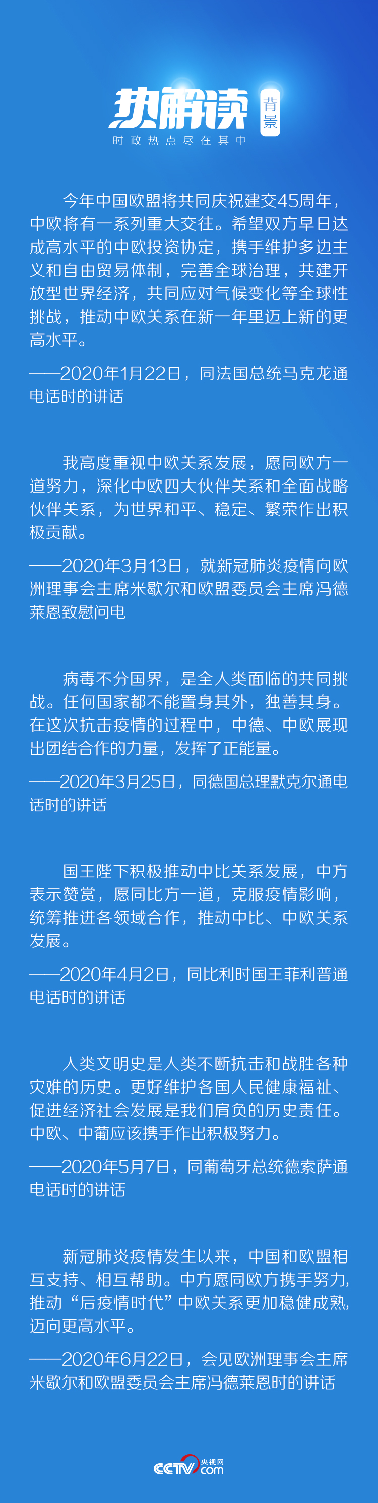 習近平指出,疫情沖擊下的世界正在深刻變化,面臨更多不穩定不確定因素。我曾提出,要努力在危機中育新機,于變局中開新局。這一點也適用于中歐關系。