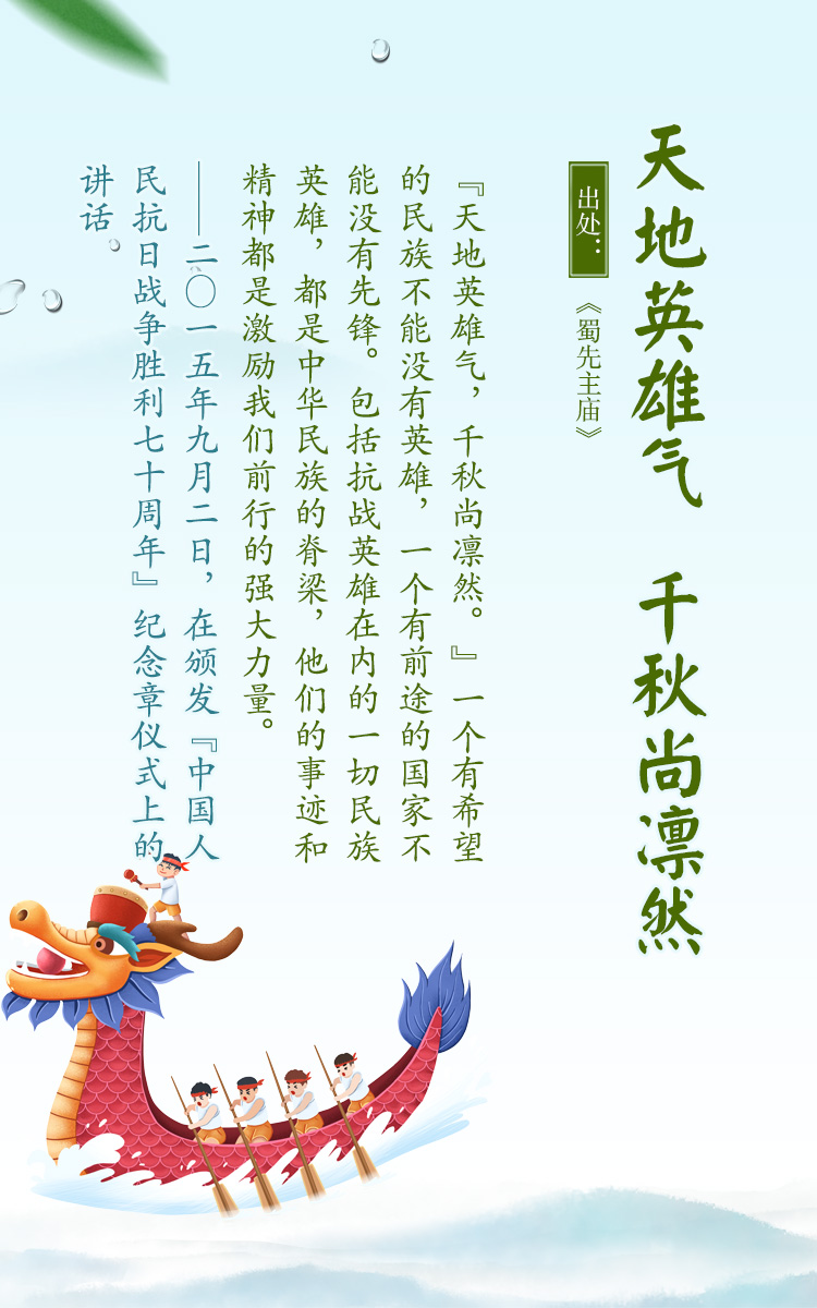 千百年來,端午節與端午文化凝結著中華民族的文化血脈和思想精華,“端午”二字也已成為傳承、弘揚、激發民族精神和愛國情感的載體。習近平總書記在講話中多次引用古文詩詞闡述家國情懷。值此端午佳節來臨之際,央視網《聯播+》特梳理相關話語,與您一起學習感悟。