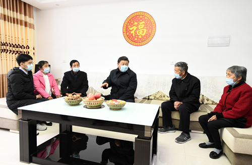 4月21日,習近平在安康市平利縣老縣鎮錦屏社區,同搬遷戶汪顯平一家圍坐在一起拉家常。