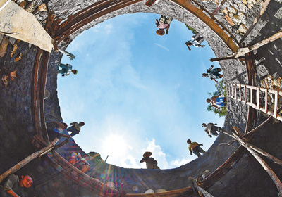 2017年9月2日,弄勇村村民在修建家庭水柜。