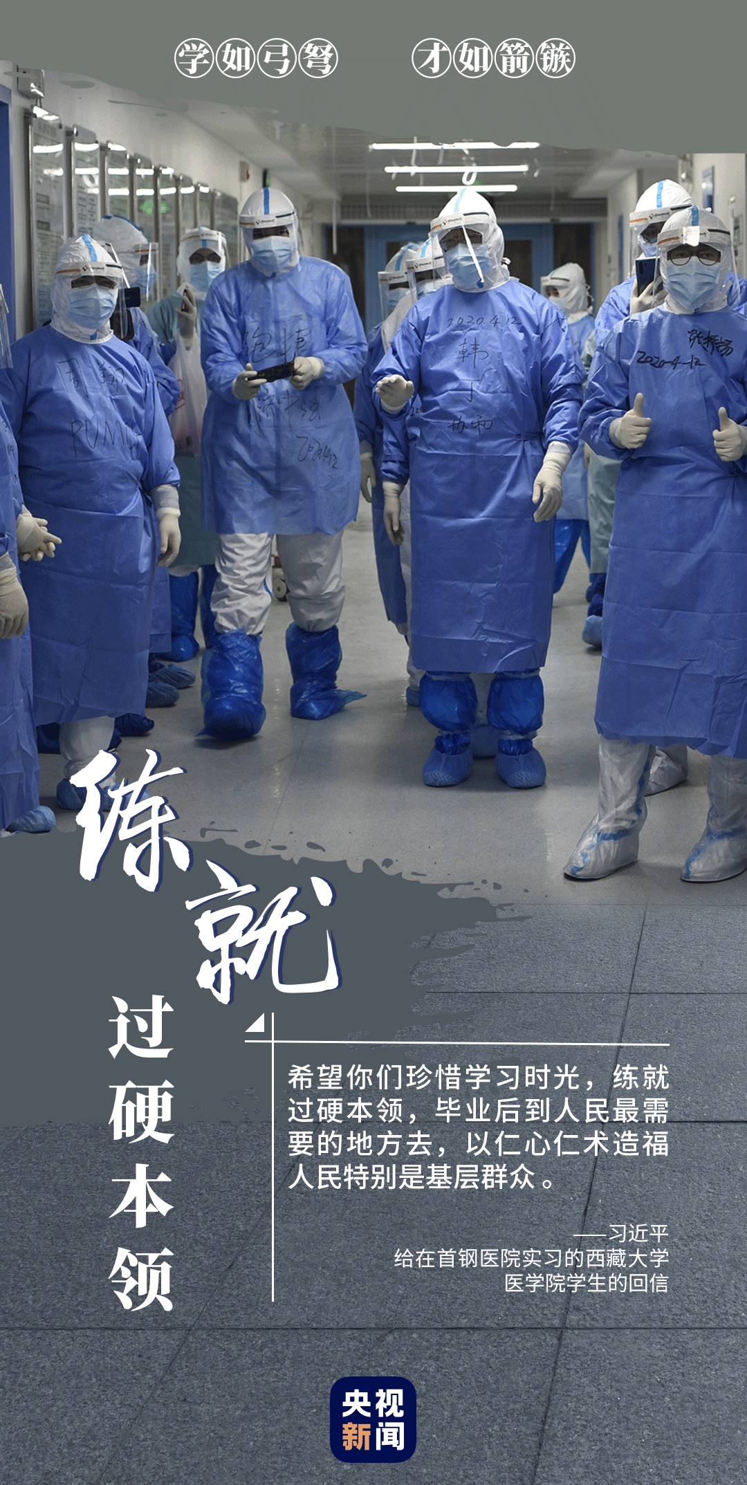 練過硬本領,做新時代奮斗者。在決勝全面小康、決戰脫貧攻堅的收官之年,在實現“兩個一百年”奮斗目標的歷史交匯之年,新時代中國青年同億萬人民一道,在實現中華民族偉大復興中國夢的新長征路上奮勇搏擊。