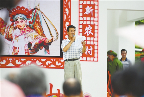 ▲柳山村八組村民杜振洲正在表演詩朗誦《柳山舊貌換新顏》。為促進新時代文明實踐活動的深入開展,該村積極組織形式多樣的文化活動,豐富村民業余文化生活。