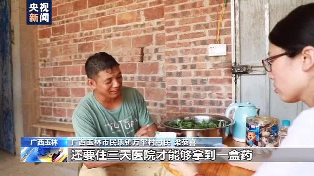 廣西玉林市民樂鎮(zhèn)萬平村村民 梁恭喜:這種藥是2300多元,還要住3天醫(yī)院才能夠拿到一盒藥。