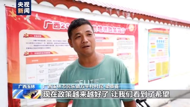 廣西玉林市民樂鎮(zhèn)萬平村村民 梁恭喜:政策越來越好了,讓我們看到了希望,我們也要更加努力,最起碼首先自己要努力,你說只坐在家里,靠人家來支持幫助的話,那肯定是不行的。
